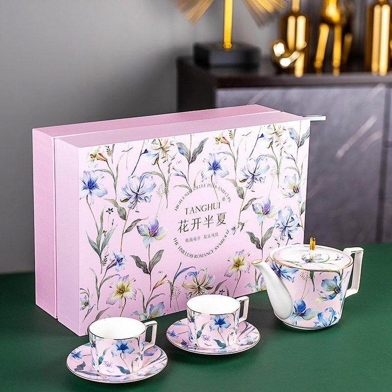 唐惠 TH-8394 日用陶瓷制品 花开半夏骨瓷茶具套装 单位:套