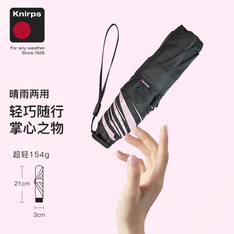KNIRPS/KNIRPS 8177 雨伞 knirps防紫外线晴三折 粉黑 单位:把