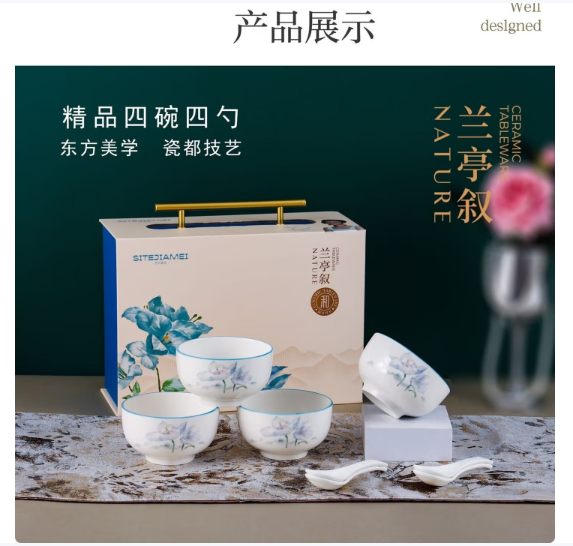 思特嘉美 LTX404 日用陶瓷制品 思特嘉美兰亭叙轻奢描金四碗四勺 单位:套