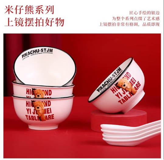 思特嘉美 MZX404 日用陶瓷制品 思特嘉美米仔熊四碗四勺 单位:套