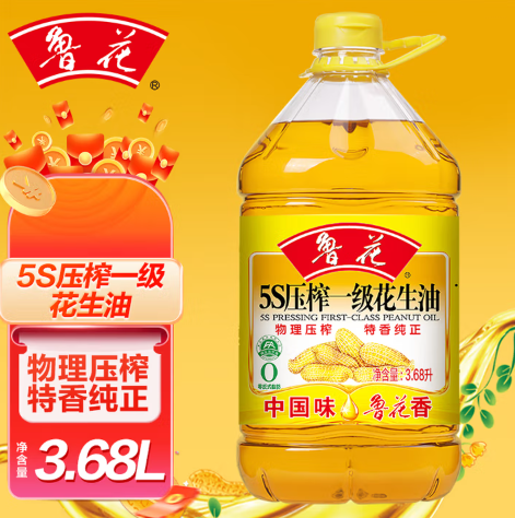 鲁花 YZHS3.68 花生油 物理压榨花生油3.68L 单位:桶
