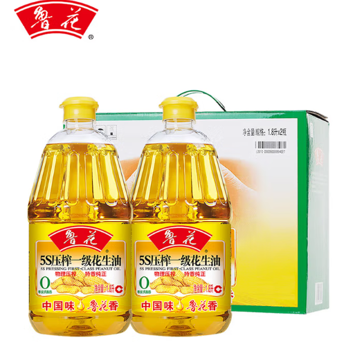 鲁花 YZHS3.6H 花生油 物理压榨花生油1.8L*2 单位:盒