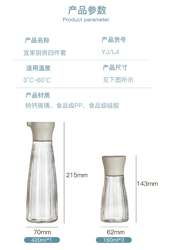 佰乐扣/BAILILOCK YJ/L4 日用玻璃制品 宜家厨房四件套 单位:套