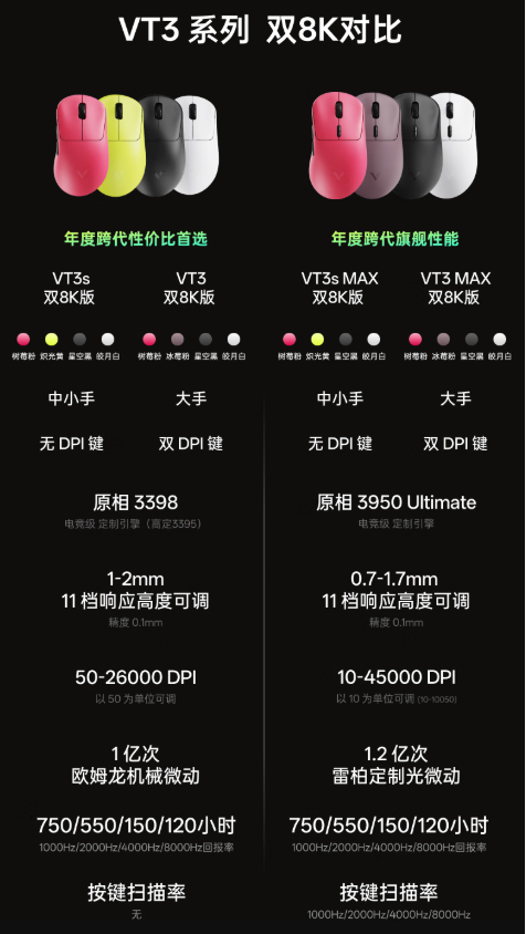 雷柏/RAPOO VT3s MAX 鼠标 中小手无线/有线双模游戏鼠标 单位:个
