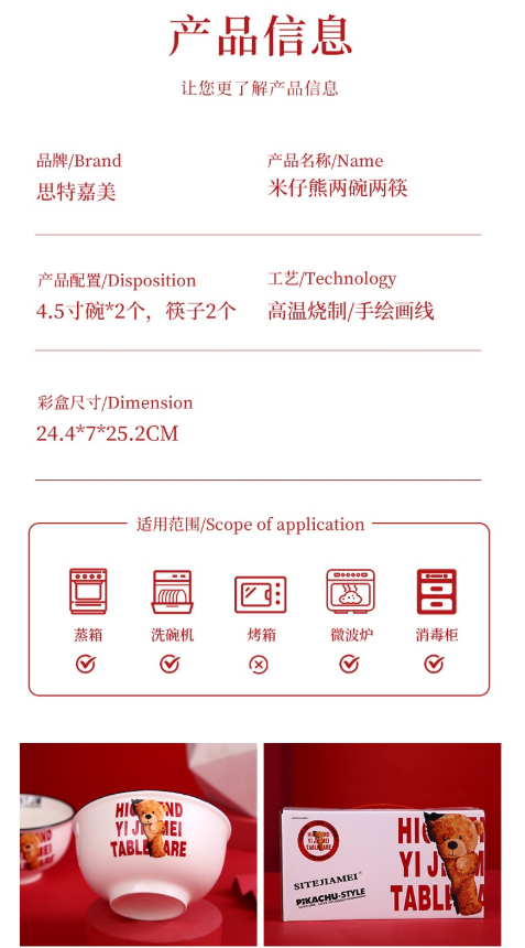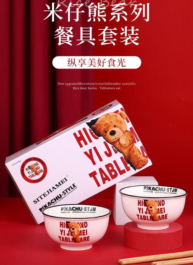 思特嘉美 MZX202 日用陶瓷制品 思特嘉美米仔熊两碗两筷 单位:套