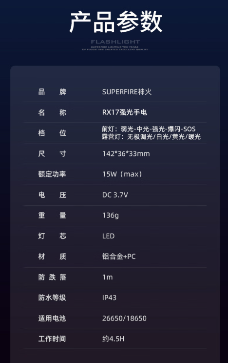 神火/supfire RX17 手电筒 手电筒强光变焦 单位:只