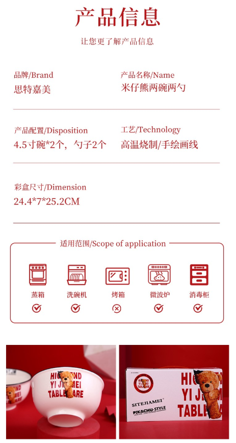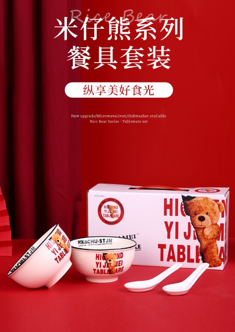 思特嘉美 MZX 日用陶瓷制品 思特嘉美米仔熊两碗两勺 单位:套