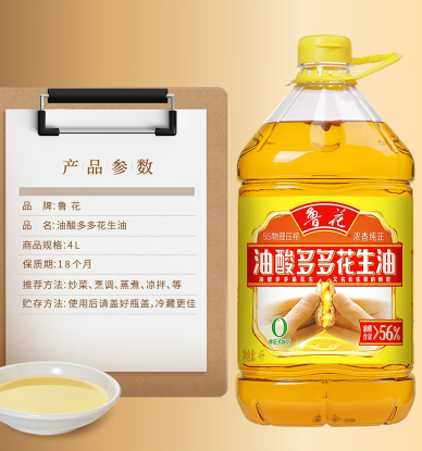 鲁花 YSDD4 花生油 油酸多多花生油4L 单位:桶