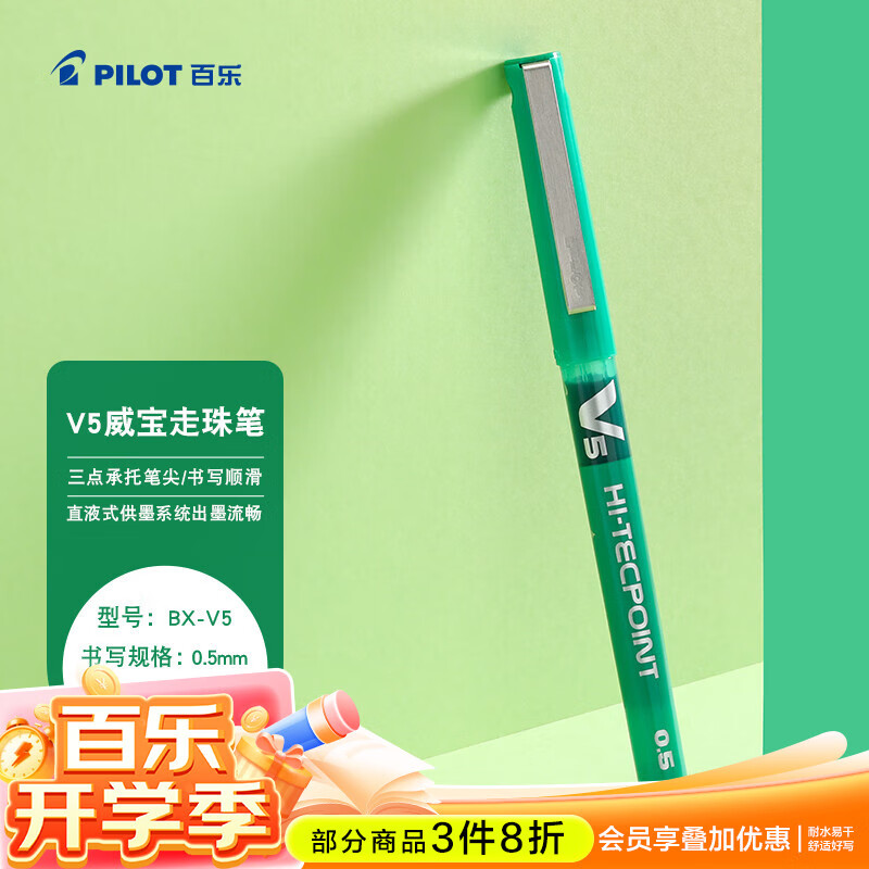百乐/PILOT BX-V5 书写用笔类用具 彩色中性笔0.5mm直液式走珠笔 绿色 单位:支