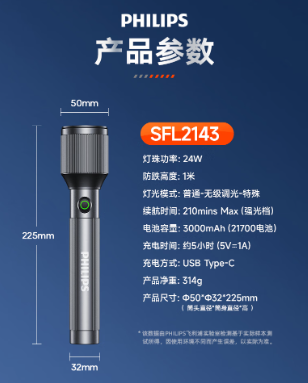 飞利浦/PHILIPS SFL2143 强光手电 单位:个
