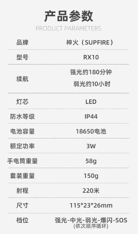 神火/supfire RX10 手电筒 手电筒强光变焦 单位:只