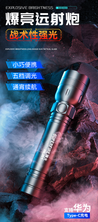 神火/supfire HLJ01 手电筒 强光充电超亮 单位:只