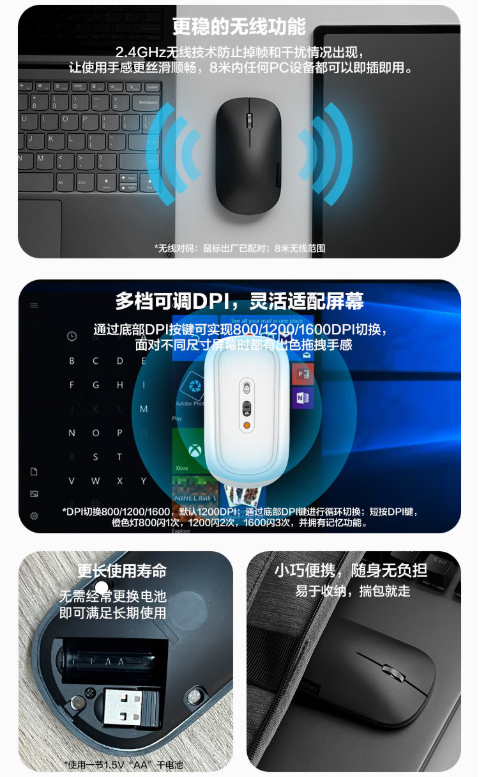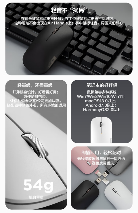 联想/LENOVO Air Handle 鼠标 无线鼠标轻音鼠标电池版 单位:个
