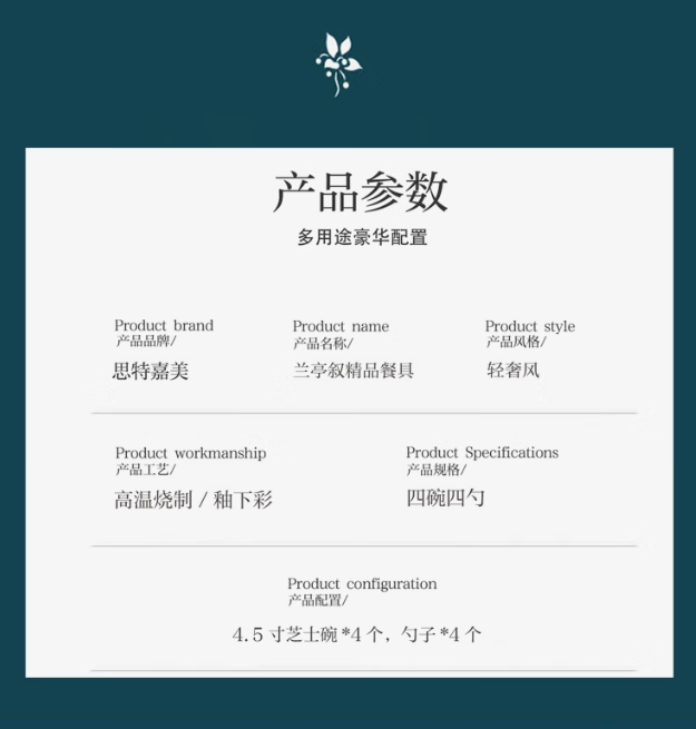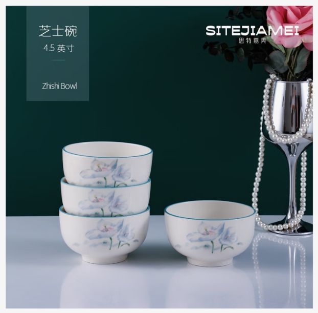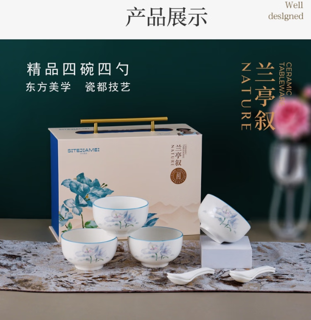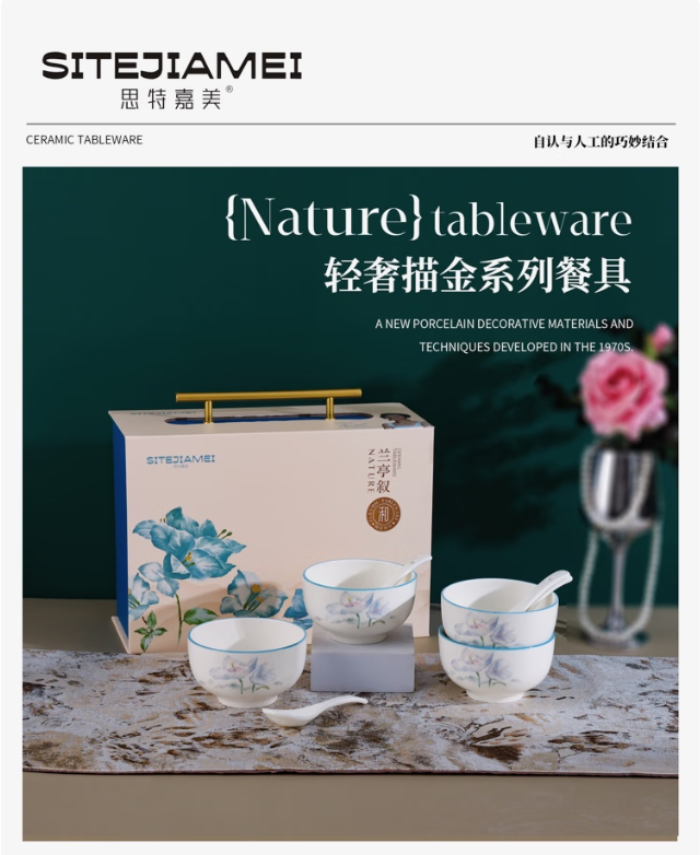 思特嘉美 LTX404 日用陶瓷制品 思特嘉美兰亭叙轻奢描金四碗四勺 单位:套
