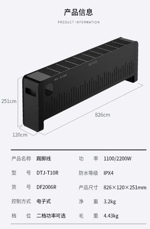 先锋 DTJ-T10 取暖器 室内加热器(机械对流式踢脚线) 单位:个