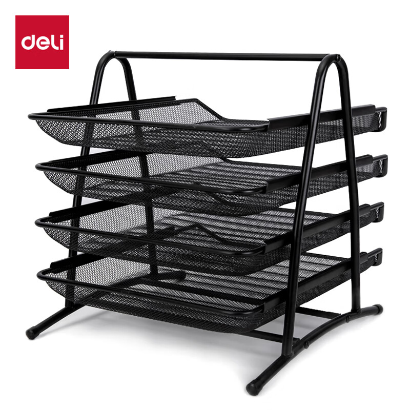 得力/deli 9184 文件筐 桌面档案收纳盒 托盘可前后移动 黑色 单位:个