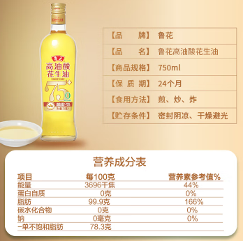 鲁花 GYS0.75 花生油 高油酸花生油0.75L 单位:瓶