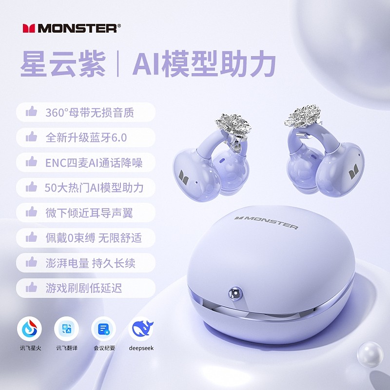 魔声/Monster MQT67z 耳机/耳麦 魔声 OWS耳夹式AI蓝牙耳机 单位:副