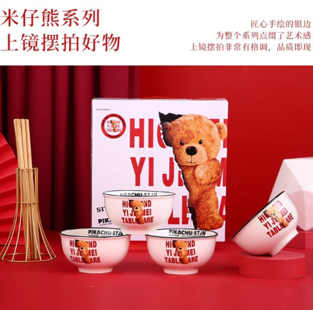 思特嘉美 MZX44 日用陶瓷制品 思特嘉美米仔熊四碗四筷 单位:套