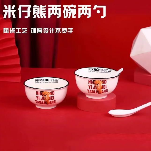 思特嘉美 MZX 日用陶瓷制品 思特嘉美米仔熊两碗两勺 单位:套