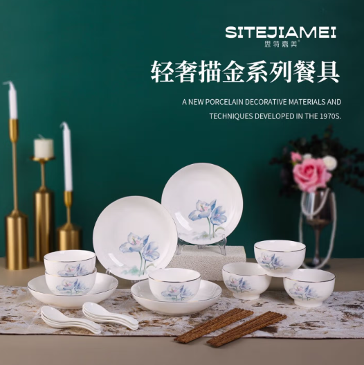 思特嘉美 LTX14 日用陶瓷制品 思特嘉美兰亭叙轻奢描金十四头 单位:套