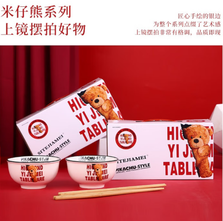 思特嘉美 MZX202 日用陶瓷制品 思特嘉美米仔熊两碗两筷 单位:套