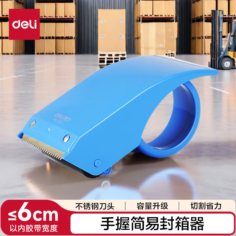 得力(deli)塑料封箱器打包器胶带底座 适用胶带宽度60mm内胶带切割机 不锈钢锋利刀头 办公用品 颜色随机802