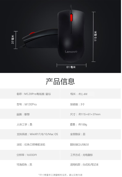 联想/LENOVO M120Pro 鼠标 有线鼠标 单位:个