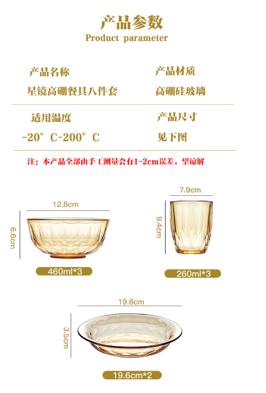 佰乐扣/BAILILOCK XJ/L8 日用玻璃制品 星镜高硼餐具八件套 单位:套