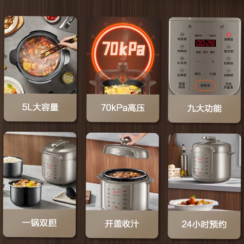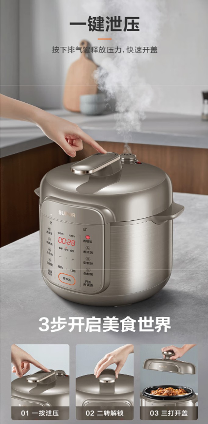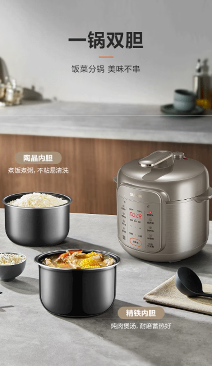 苏泊尔/SUPOR SY-50YC16 电饭煲/电压力锅 5L铁铝不粘+陶晶内胆电压力锅