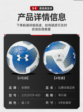 安德玛/UNDERARMOUR 22520109-414-5 足球 足球5号 单位:个
