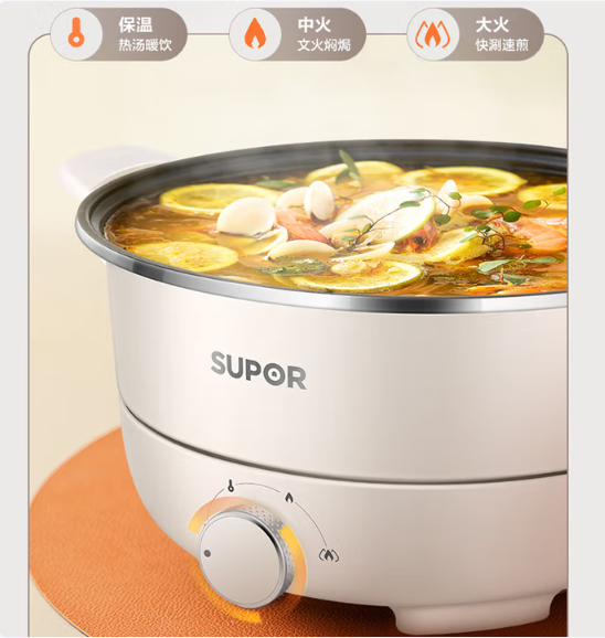 苏泊尔/SUPOR H27YK37 汤锅 4L旋钮3档火力电火锅