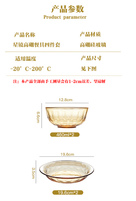 佰乐扣/BAILILOCK XJ/L4 日用玻璃制品 星镜高硼餐具四件套 单位:套