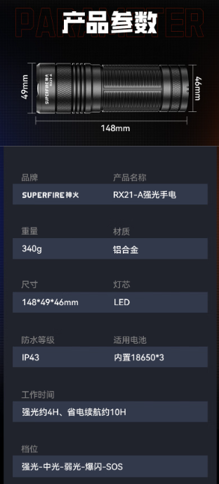 神火/supfire RX21-A 手电筒 强光变焦 单位:只