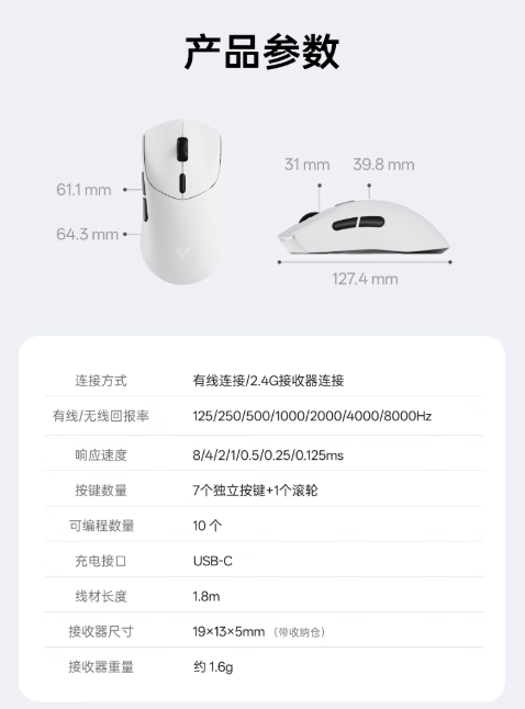 雷柏/RAPOO VT7MAX-R 鼠标 中大手无线/有线双模游戏鼠标 单位:个