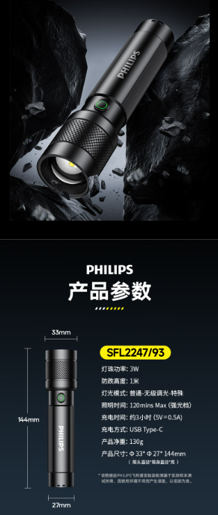 飞利浦/PHILIPS SFL2247 手电筒 强光手电 单位:个