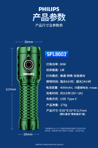 飞利浦/PHILIPS SFL8603 手电筒 强光手电 单位:个