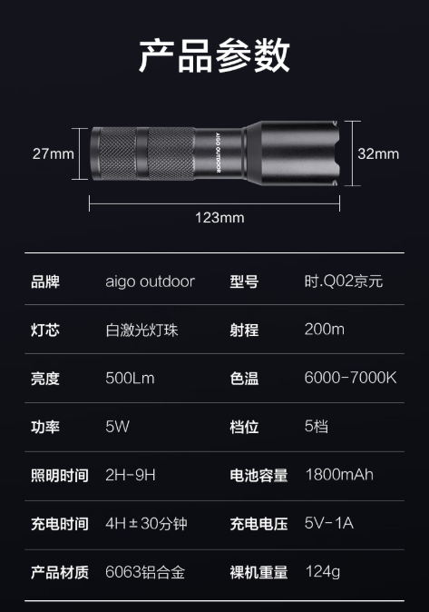 爱国者/Aigo Q02R 手电筒 强光便携式 单位:只