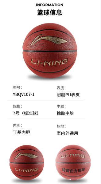 李宁/LI-NING YBQV107-1 篮球 成人7号 单位:个