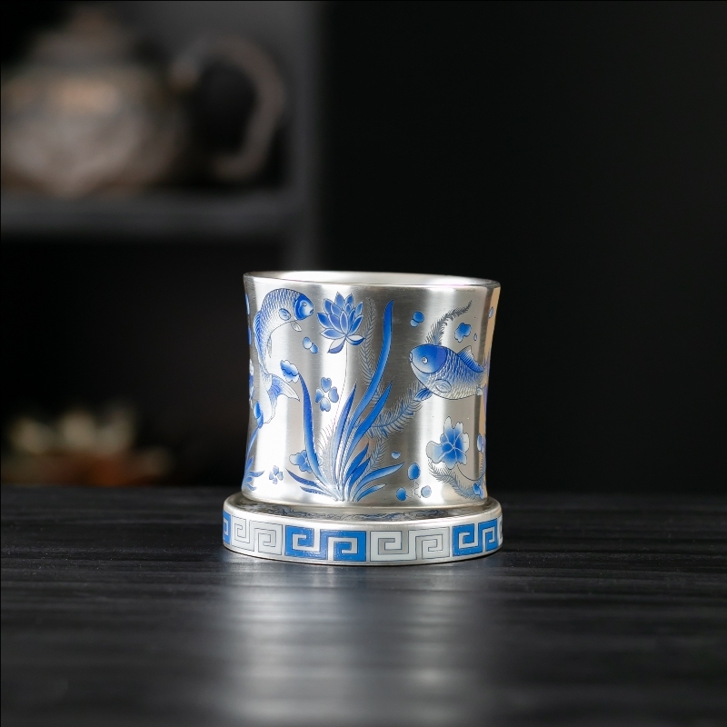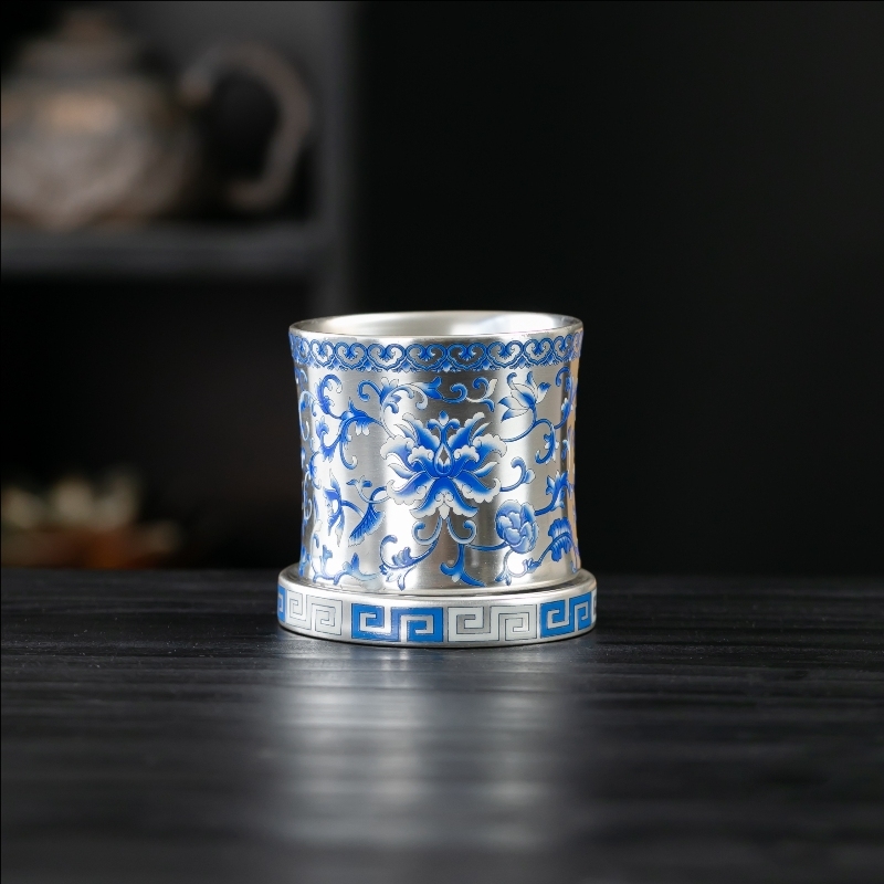 唐川 鎏银时来运转陶瓷茶杯主人杯高档