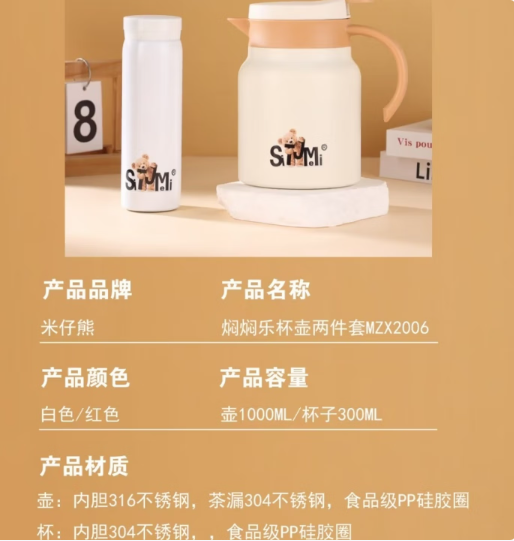 思特嘉美 MZXMCH-w 壶 无品牌 思特嘉美米仔熊焖茶 单位:套
