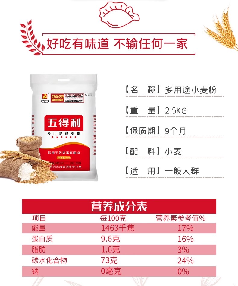 五得利/WUDELI DYT02.5 小麦面粉2.5KG 单位:袋