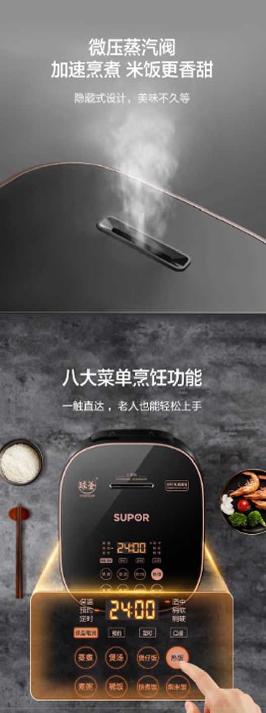 苏泊尔/SUPOR SF40HC32 电饭煲/电压力锅 4L铁合金材质电饭煲223*268*347mm