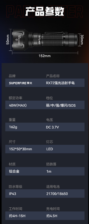 神火/supfire RX72 手电筒 手电筒强光超亮 单位:只