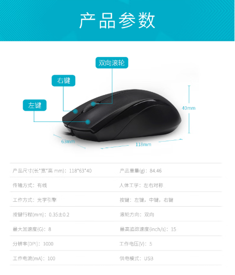 雷柏/RAPOO N1200-W 鼠标 有线鼠标 单位:个