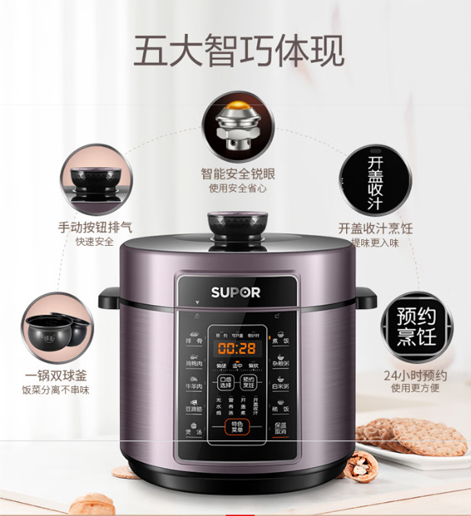 苏泊尔/SUPOR SY-60FC07Q 电饭煲/电压力锅 6L陶晶内胆+搪瓷内胆电压力锅